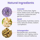 Lavandula Angustifolia (Lavender) Flower Extract 5%, Prunus Amygdalus Dulcis (Sweet Almond) Oil 1.0%, Tocopheryl Acetate Vitamin E 0.5%, Citrus Aurantium Amara Flower Extract(Neroli) 1%, Morus Alba Fruit Extract (Mulberry Fruit) 1.5%, Ashwagandha Extract (withania somnifera) 0.5%.
